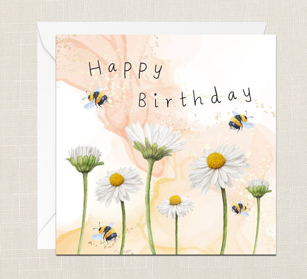 Happy Birthday Bumble Bees And Daisies